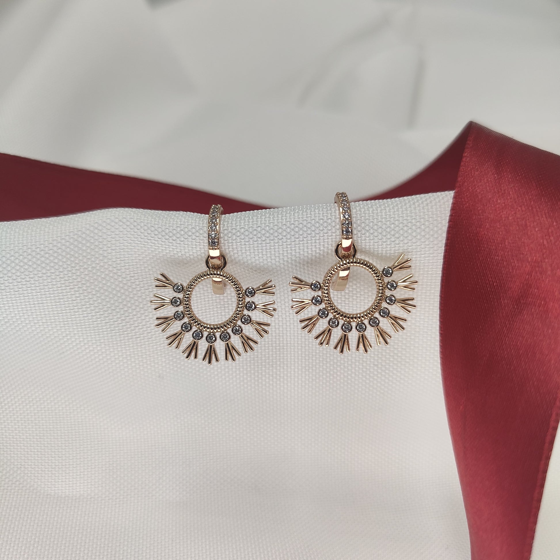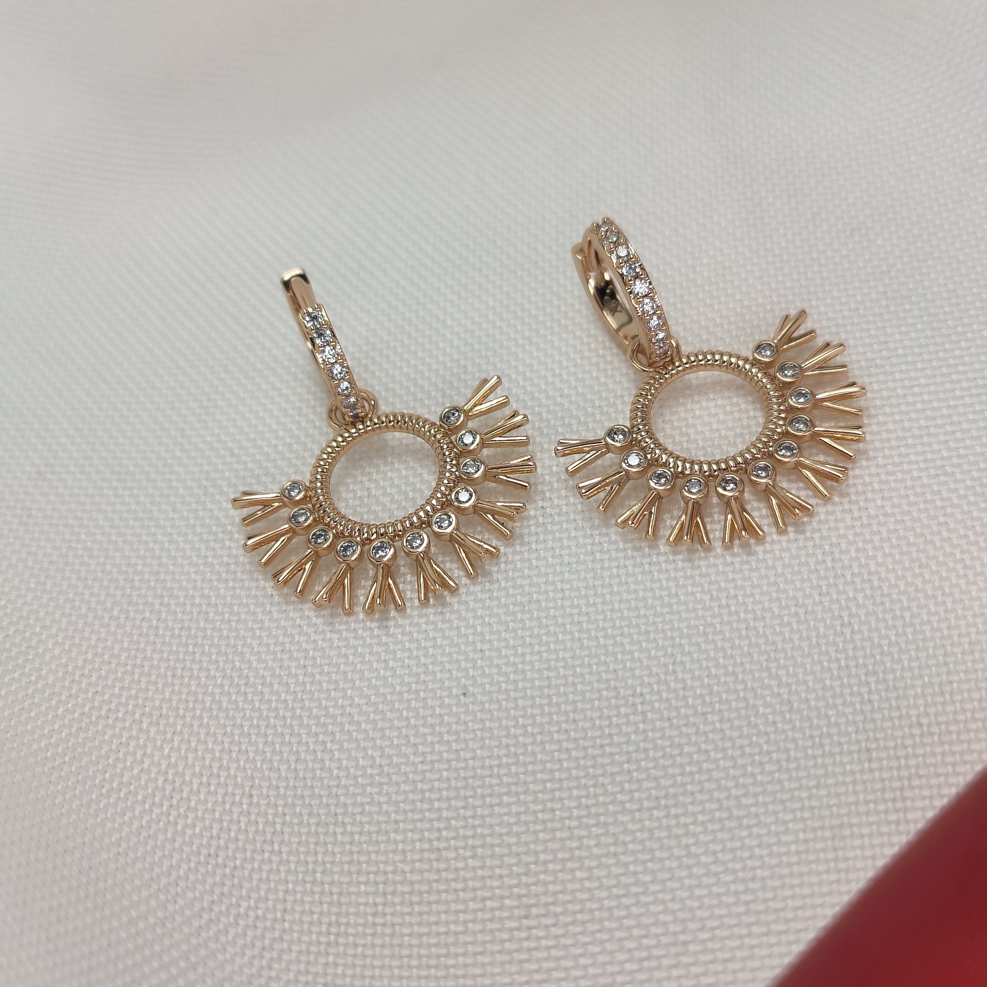 The Aurora sunburst drop earrings are designed to bring light and joy to your jewelry collection. Whether you're stepping out for a daytime event, enjoying a summer evening, or simply want to brighten your everyday style, these earrings are your perfect accessory. Their unique design and sparkling stones make them a dazzling addition to any outfit.