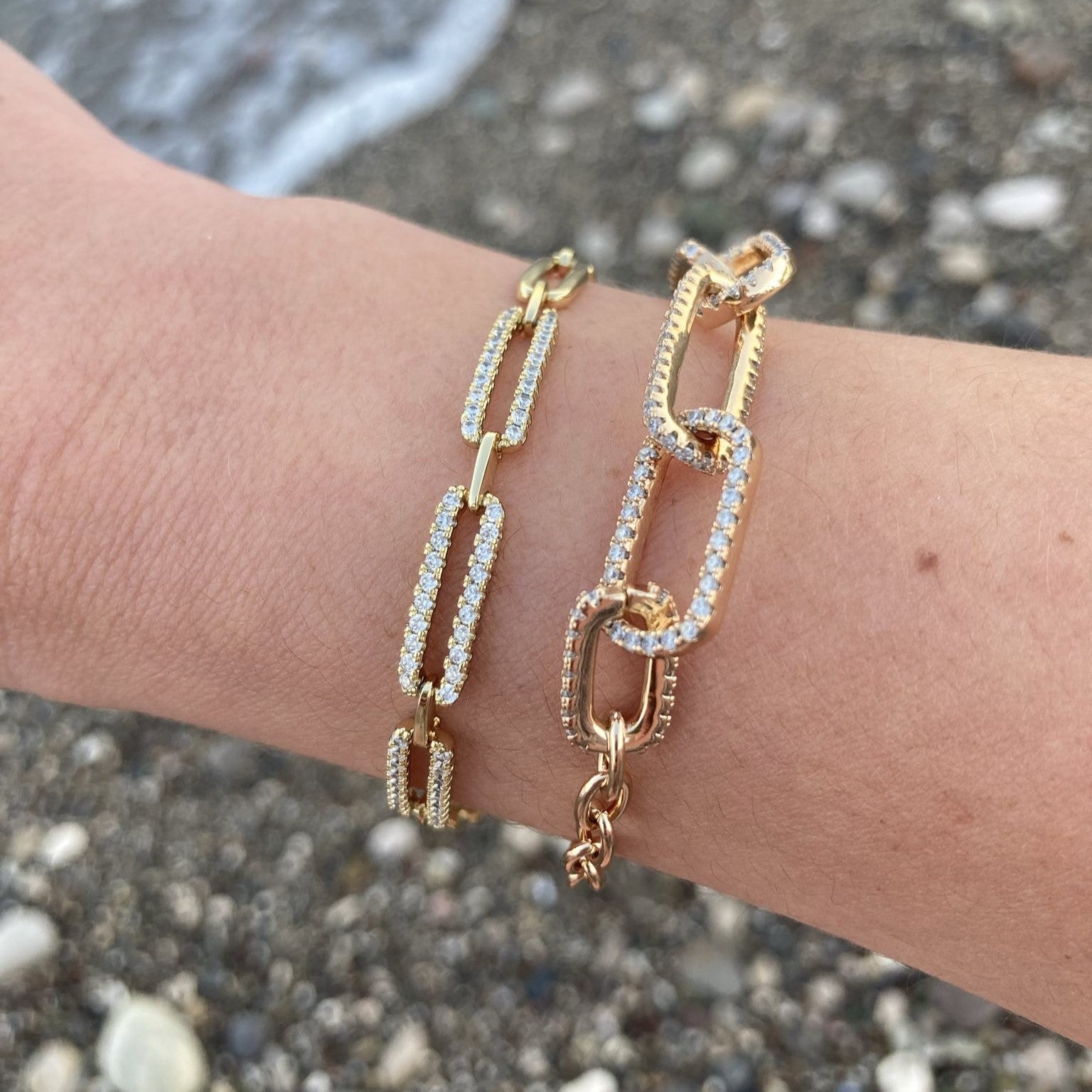 The Cecilia Linked Pavé Bracelet is perfect for adding a touch of glamour to any outfit. Wear it solo for a minimalist yet chic look, or layer it with other bracelets to create a statement stack. Pair it with a tailored blazer for a polished office look, or with a sleek dress for a night out