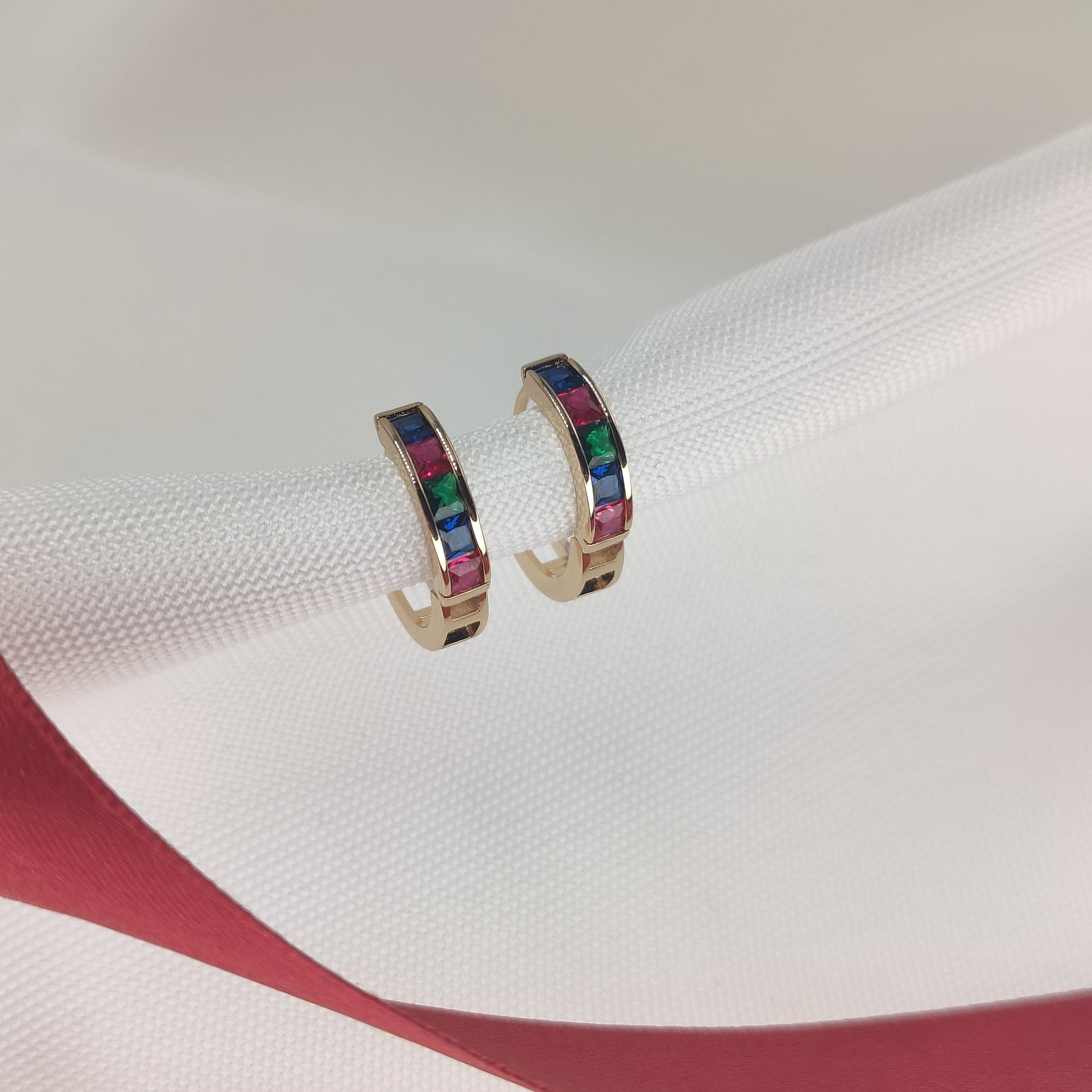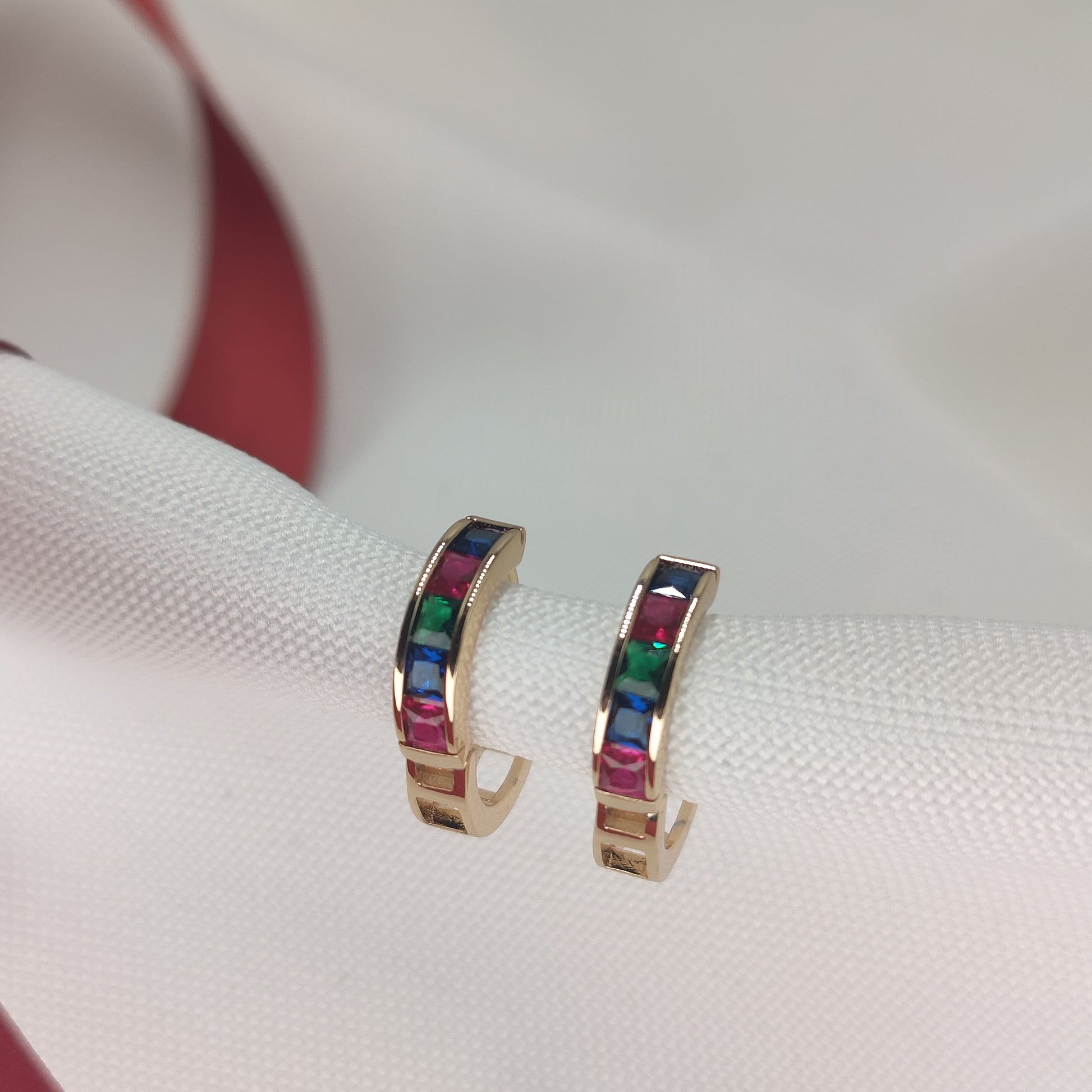 Pair the Giselle Multi-Colored Gemstone Hoop Earrings with a simple, monochromatic outfit to let the vibrant colors shine. Alternatively, you can match them with a colorful ensemble for a playful and coordinated look. These earrings are perfect for making a statement at parties, adding a fun touch to your daily wear, or complementing your evening attire.