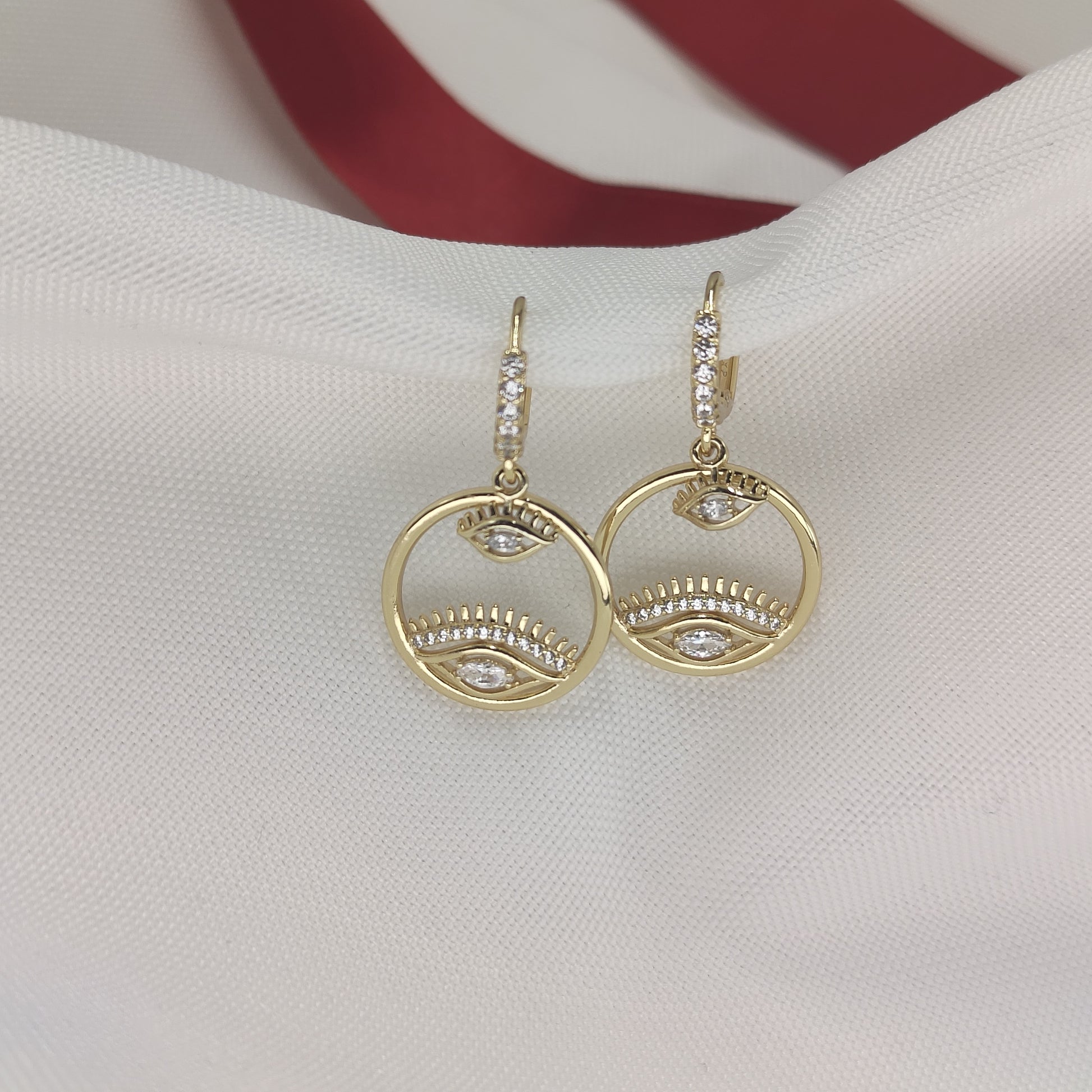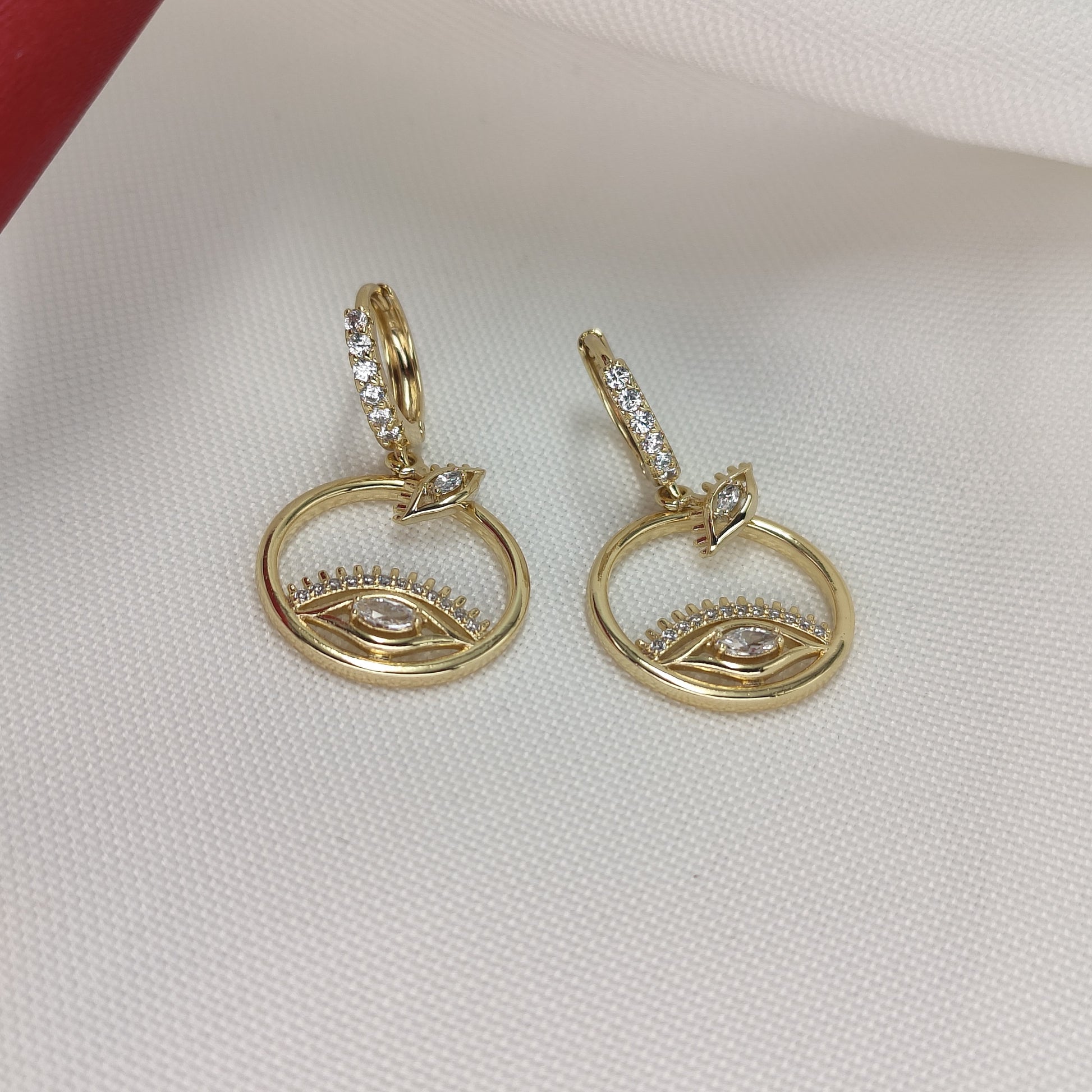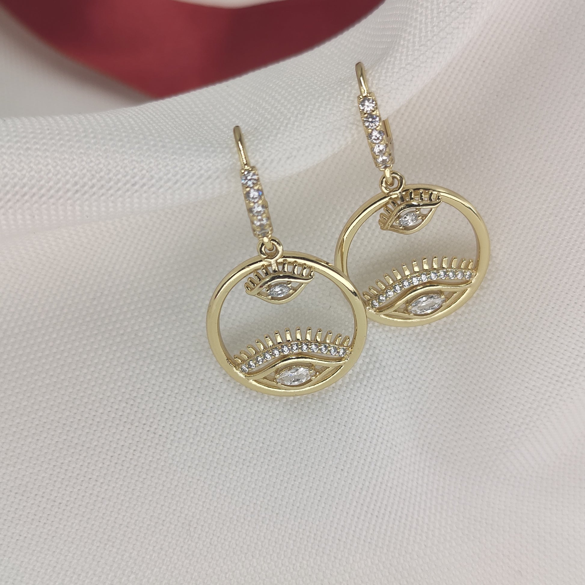 Wear these earrings with a simple blouse and distressed jeans for a casual yet glamorous style. The eye design brings a unique element to your everyday attire.