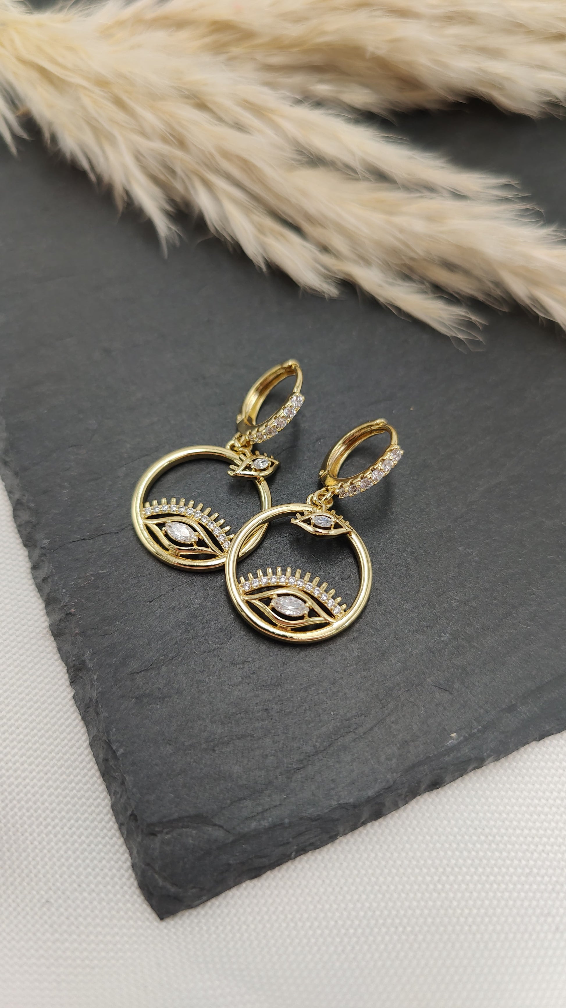 Why You'll Love It: The Iris eye charm earrings bring a unique and mystical vibe to any outfit. Their intricate design and sparkling details make them a standout piece that adds a touch of intrigue and elegance. Whether you're attending a special event or simply want to elevate your everyday look, these earrings are sure to draw attention and compliments.