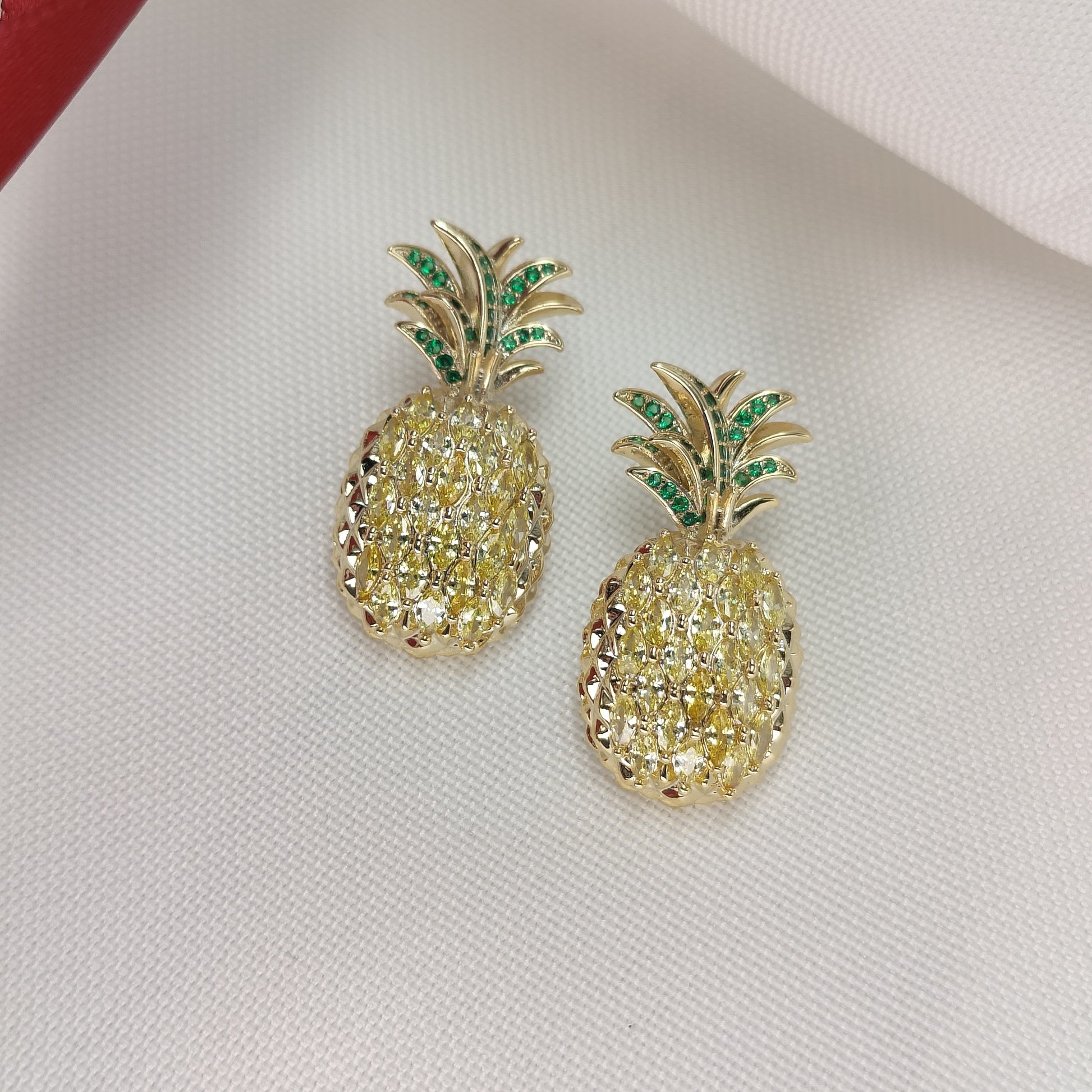 - Design: Playful pineapple shape with white and green gemstone accents