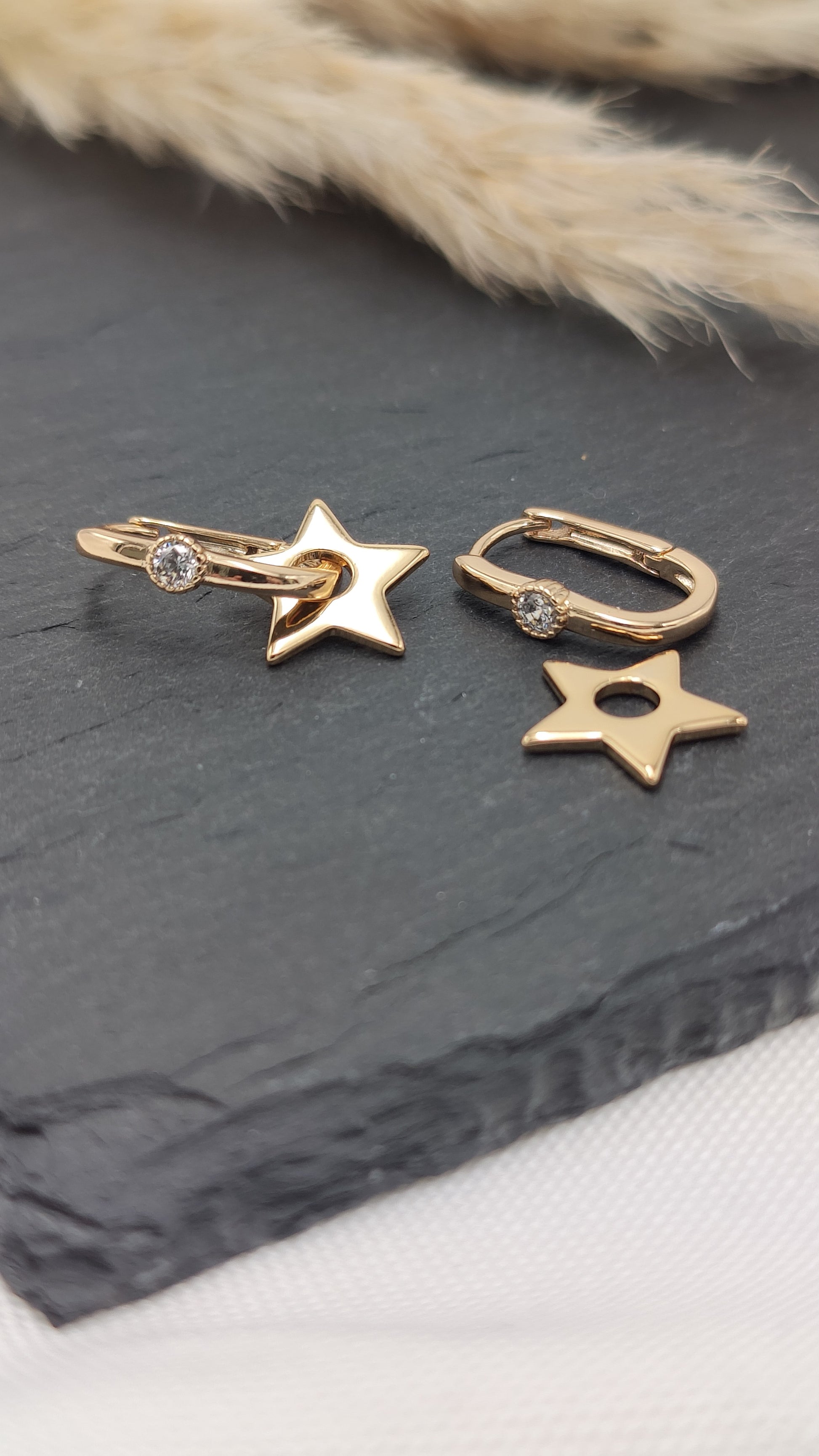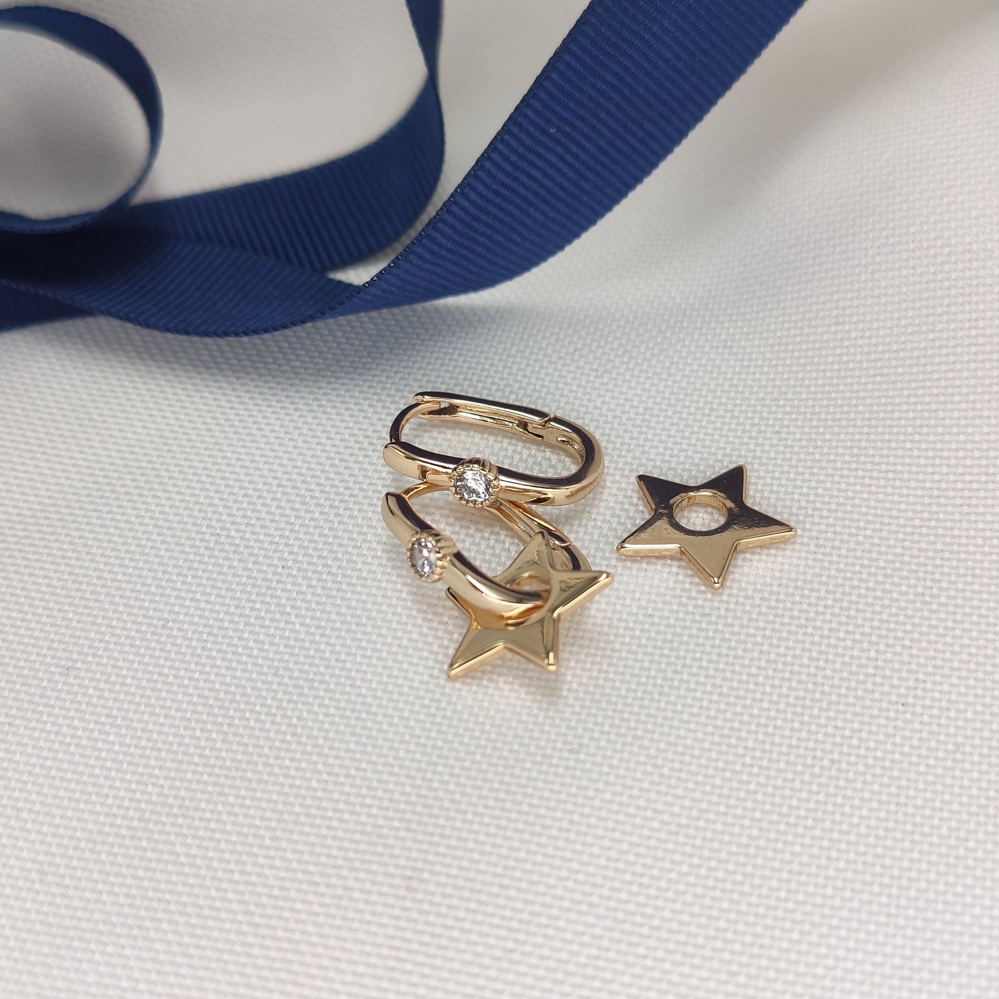 The Stella Star Hoop Earrings are the perfect way to add a twinkle to your look. Whether you're dressing up for a special occasion or adding a hint of sparkle to your everyday ensemble, these earrings are your go-to accessory. Their whimsical design and radiant shine make them a must-have for any jewelry lover.