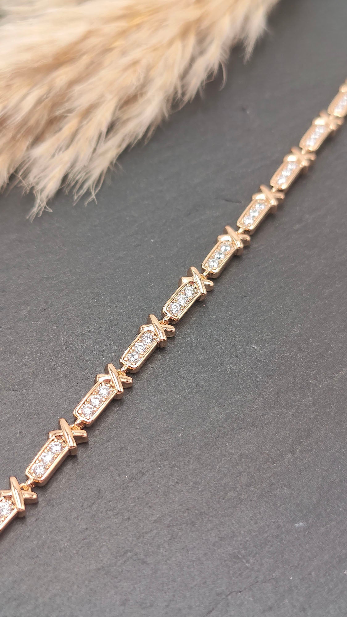 - Design: Crystal-studded links for added sparkle