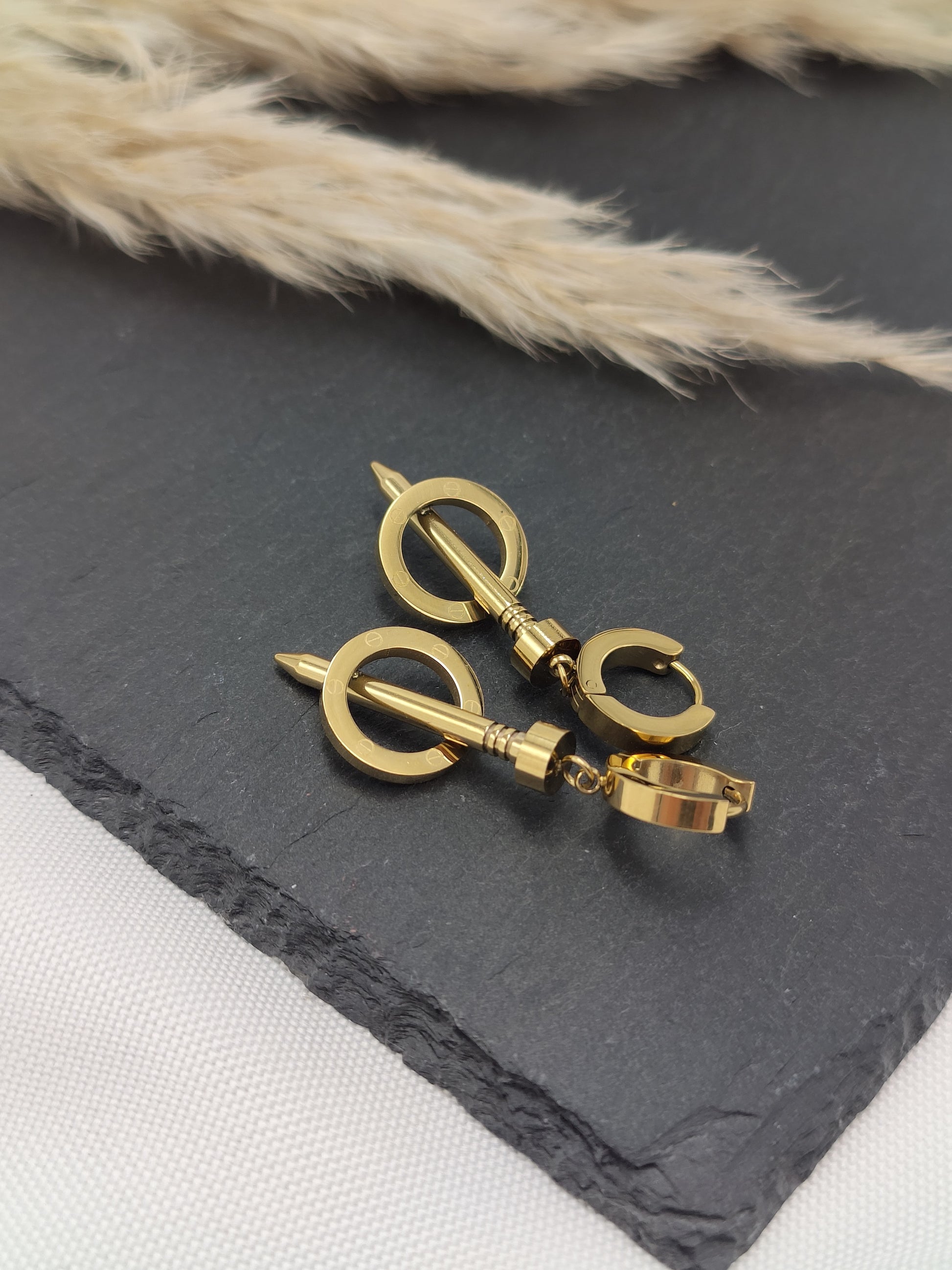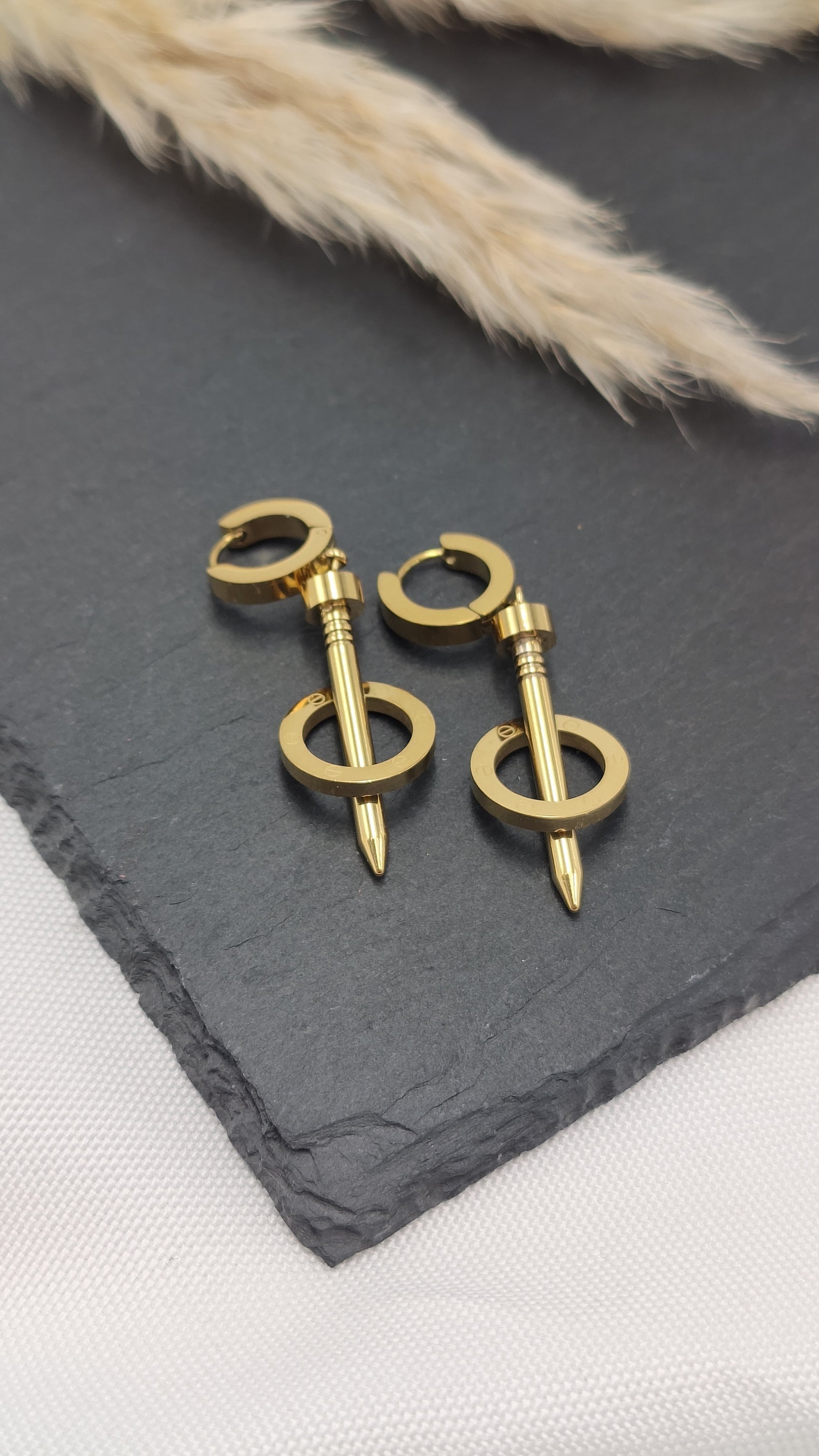 Why You'll Love It: The Xena industrial hoops bring a powerful and modern vibe to any outfit. Their bold design and impeccable craftsmanship make them a standout piece that can elevate both casual and formal looks. Whether you're attending a fashion-forward event or want to add an edgy twist to your everyday style, these earrings are sure to turn heads.